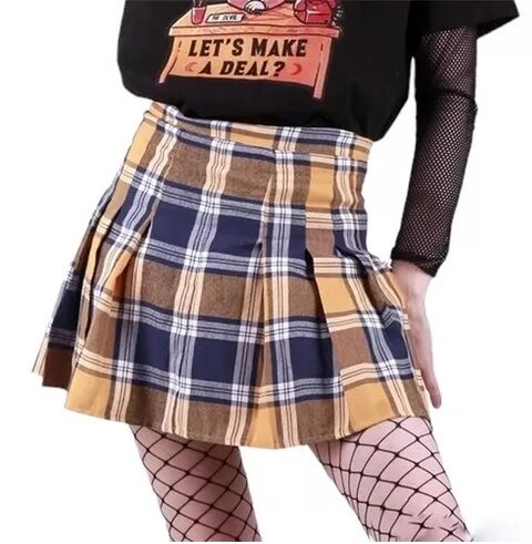 Falda tiro alto con tablas cocidas, confeccionada en viyela.